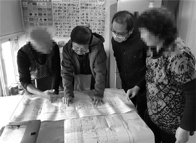 天津市检察院第七检察部检察官会同中级法院法官到胡大娘家中结合建筑图纸进行实地调查。