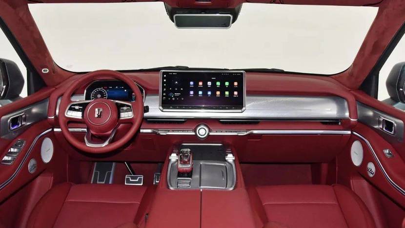 内饰部分,坦克700 Hi4-T以豪华为主基调,仪表台和门板线条采用环抱式设计,车内覆盖大量的软性皮革材质,搭配银色装饰面板,看起来相当富丽。对于50万价位的国产车来说,我们完全不需要担心它的豪华程度。