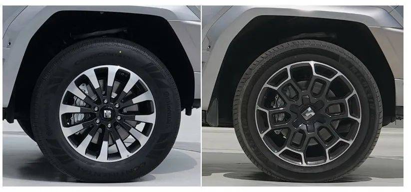 在车轮部分,基础版坦克700标配20英寸银色密辐条轮圈,搭配275/60 R20规格马牌CrossContact公路胎。另外,车辆也能选装限定版同款22英寸轮圈,搭配275/50 R22规格的米其林PS4 SUV轮胎。