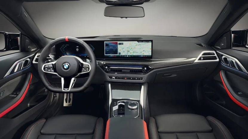内饰方面,新款4系采用宝马最新的12.3英寸+14.9英寸一体式曲面双联屏设计,内置iDrive 8.5智能人机交互系统。同时,新车的运动版车型还换用了平底造型的三幅式方向盘,并且在空调出风口、门板等细节部分也有所调整。