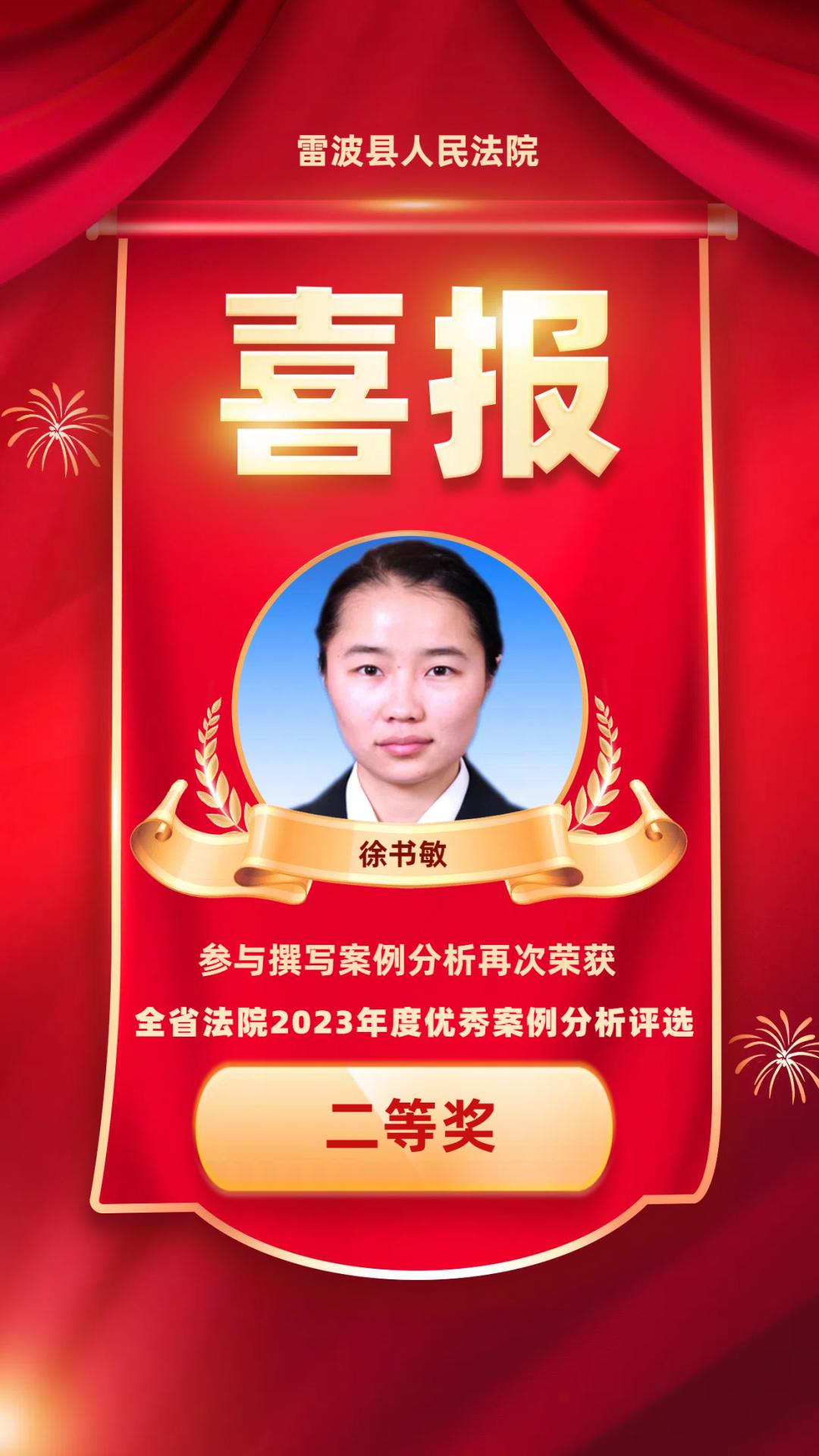 喜报!雷波法院徐书敏参与撰写案例分析荣获省级二等奖!