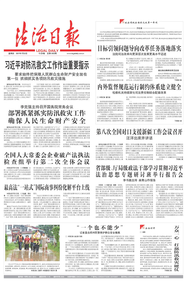 《法治日报》“奋斗百年路 启航新征程·庆祝中国共产党成立100周年”系列特刊之一(2021年7月1日6、7版)(点击图片查看)