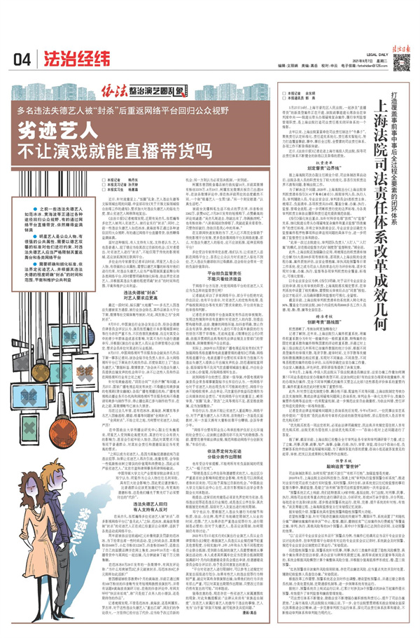 策划推出“依法整治演艺圈乱象”专题,连续刊发6篇调查报道,持续加强抵制泛娱乐化、流量至上等不良倾向舆论引导,指出依法治理路径。