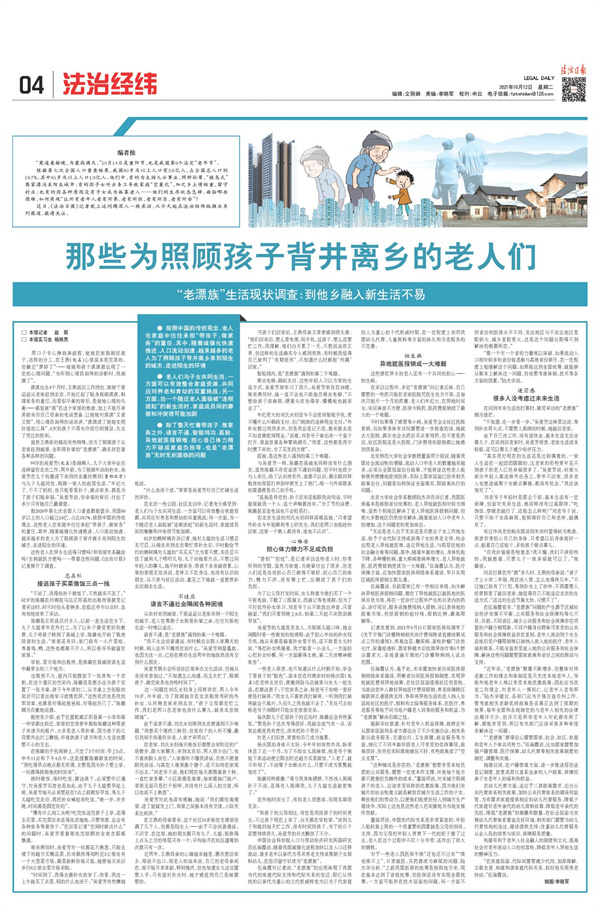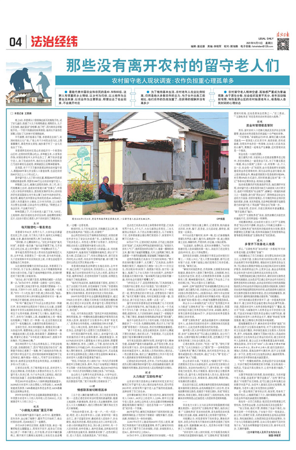 《法治日报》2021年10月12日至14日4版连续推出调查报道,聚焦老年人生存现状和精神世界,语言生动、笔触感人、情感真挚,引发读者强烈共鸣(点击图片查看)