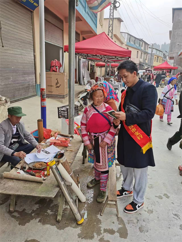 邮储银行蒙自市支行则利用期路白镇的赶集日开展集中宣传,活动现场工作人员拉起宣传横幅,粘贴宣传海报,向前来赶集的广大村民发放宣传折页,耐心讲解《反电信网络诈骗法》相关法律知识,并通过现场答疑和防骗案例的分享,使广大农村村民认识到了电信网络诈骗犯罪的危害,了解了诈骗分子的常用伎俩,增强了识骗防骗的意识和能力。