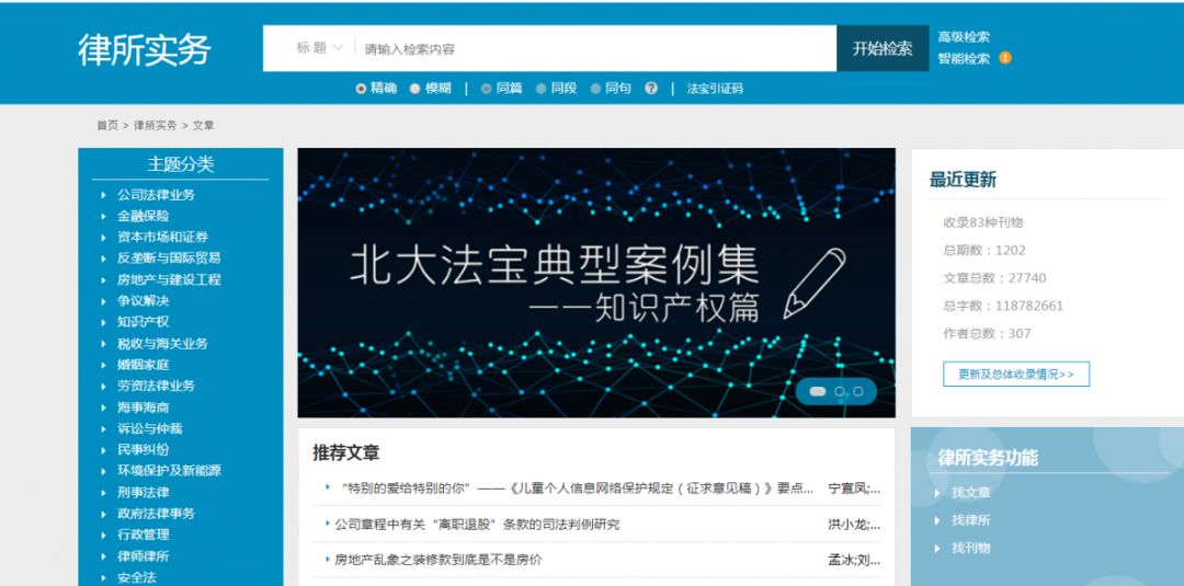 (1)北大法宝的“律所实务”版块——这个版块目前在其他数据库中没有,收录了80多种2万多篇律师事务所的内部刊物,有不少律师的办案经验。