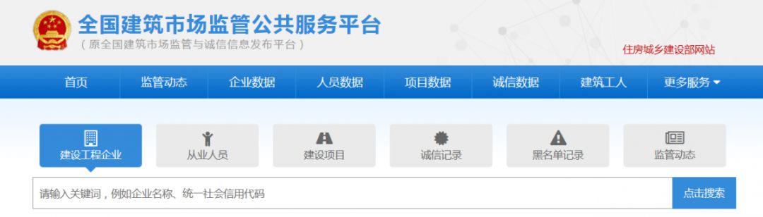 官方的建筑类企业资质展示平台,可查询到相关企业的资质证书信息。目前还增加了很多的企业信息与人员数据。