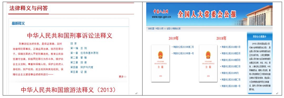 全国人大的官网主要可以帮助法律人查到历年全国人大的公报和重要法律的释义。