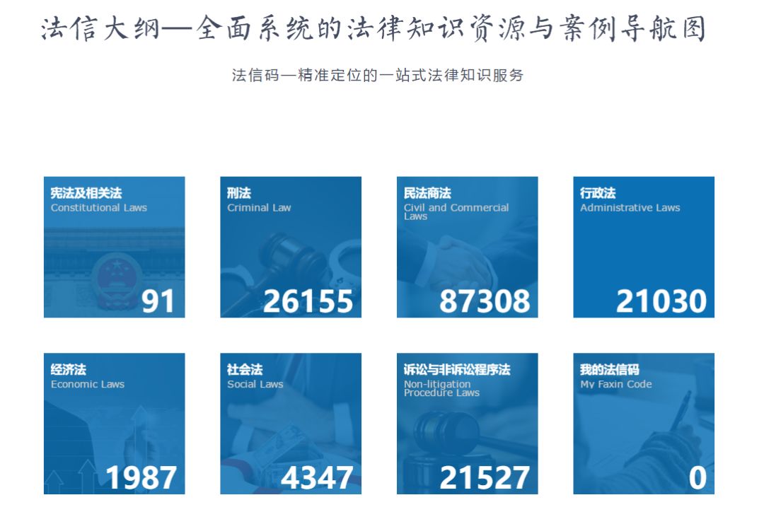 (2)有一套被称作“中国钥匙码”系统的庞大法律知识体系——法信大纲,利用这个大纲可以从海量法律文献中进行专业检索导航。