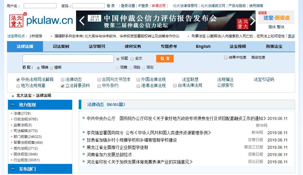 背景:“北大法宝”是由北京大学法制信息中心与北大英华科技有限公司联合推出的检索平台,具有高校背景。