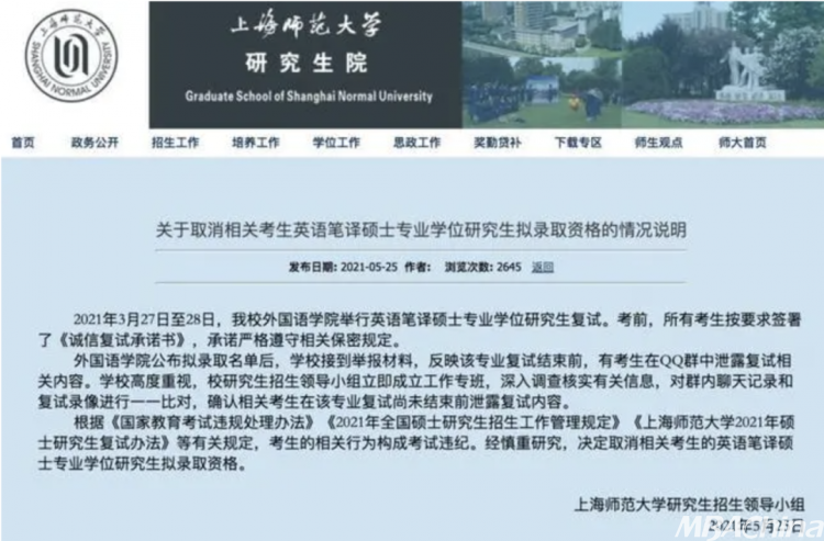 上师大复试讨论题目被举报,30余名拟录取考生被取消资格。