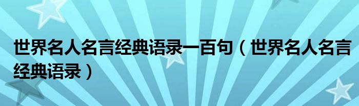 大家好,小乐来为大家解答以下的问题,世界名人名言经典语录一百句,世界名人名言经典语录很多人还不知道,现在让我们一起来看看吧!