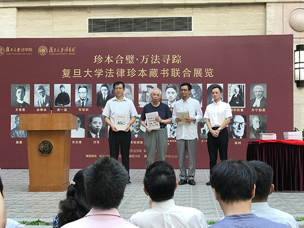 其中不少珍本静静地尘封于馆藏书库中,有些则属于私人珍藏,非亲友难得一窥。经过半年多的努力,复旦大学法学院教授王伟将其中与复旦大学有关的法科珍本藏书汇聚,并策划了“复旦大学法律珍本藏书联合展览”。9月16日,展览开幕式暨书展揭幕仪式在复旦大学江湾校区李兆基图书馆举行。