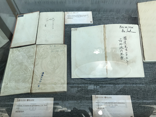 记者在现场看到,展览以复旦法学历史人物为主线,收录了王宠惠、孙寒冰、张祖训、梁传愈等复旦法学早期一批法律先杰的人物签名藏书及现复旦法学院老师的珍贵书籍共90本。现场展出了复旦法科创始人王宠惠到耶鲁大学第一年购买的刑法书;抗战时期孙寒冰收藏的法律图书,内有他的印章和签名;当时全国唯一的法学女博士郑毓秀的藏书;胡适的法律藏书,他赠与了友人高一涵,后藏于复旦。