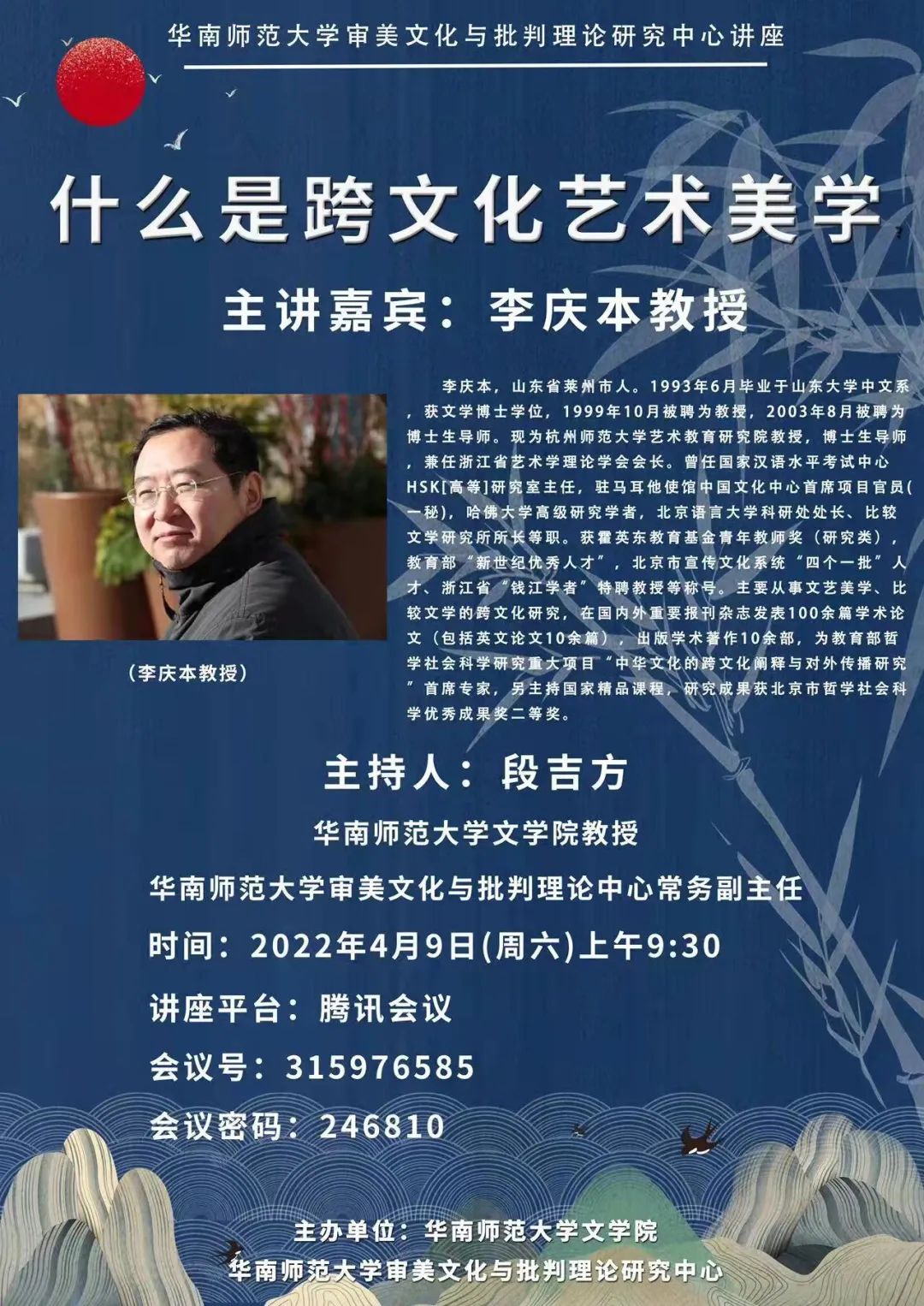 主讲人:李庆本(杭州师范大学艺术教育研究院教授)