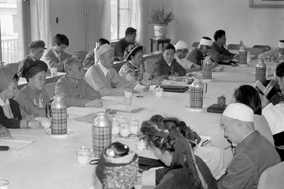 1984年5月23日,出席六届人大二次会议的云南省人大代表分组讨论民族区域自治法(草案)摄影/王敬德
