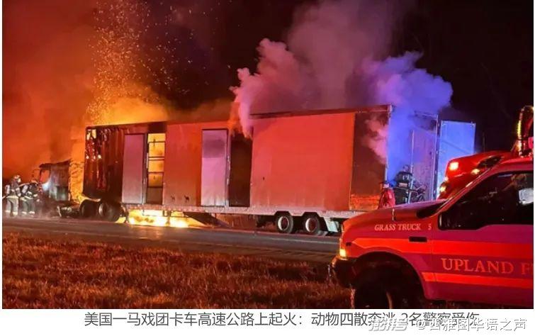 美国一马戏团卡车高速公路上起火:动物四散奔逃 2名警察受伤