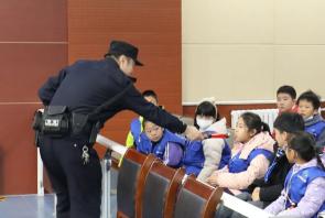 接下来就到了小朋友们最期待的环节——模拟法庭。刚踏入审判庭的小记者们被庄严肃穆的氛围所感染,一下子安静了下来。刑庭法官李长艳向小记者们详细介绍了法庭的设置以及法官、书记员、陪审员等人员的具体工作职责,法警姜浩、傅道恒则展示了安检流程及常用警械的使用方法,赢得了孩子们的阵阵掌声与积极互动。