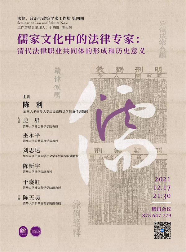 本讲座将探讨在儒家文化影响下的清代中国是否以及如何能兴起一个由成千上万的法律专家所组成的全国性职业群体(其主要成员包括遍及全国的司法幕友和接受过相对系统训练的司法官员以及讼师)。通过分析该群体的构成、规模及其成员在司法场域内外的相互关系和角色,讲座将进一步讨论这个法律职业群体的兴起和壮大,如何影响了清代司法制度和司法实践、法律知识的生产和传播,以及中国法律文化的继承和发展。
