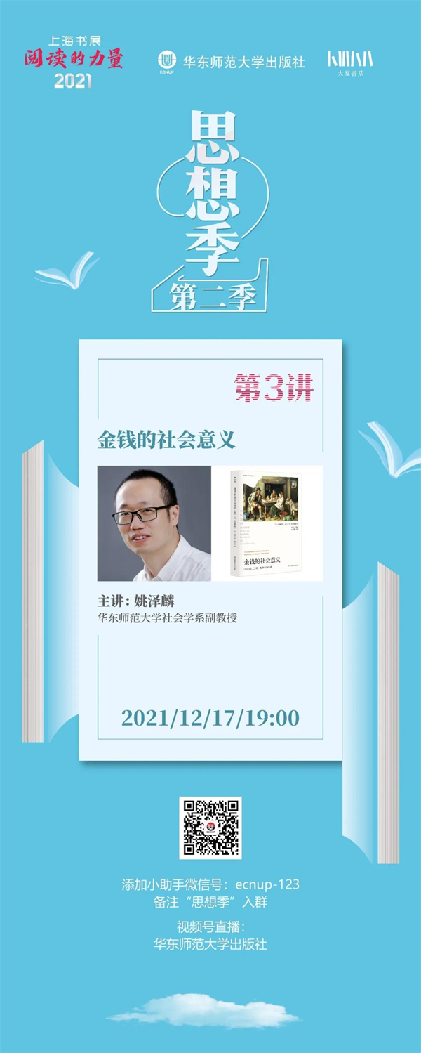 金钱是否只是金钱?是否如很多古典理论家所说,是只有量的差别而没有“质”的区分的一种东西?其本身是否不牵涉任何感情,也会将社会关系简化为冷漠疏离的工具性关系?金钱真的会将现代社会转变为一个冷冰冰的世界吗?普林斯顿大学社会学教授泽利泽的《金钱的社会意义》通过对私房钱、工资、救济金等诸种金钱的考察,强有力地一一否定了上述问题。周五晚的“思想季”第二季第3讲,我们邀请姚泽麟老师来为大家解读《金钱的社会意义》这本书。