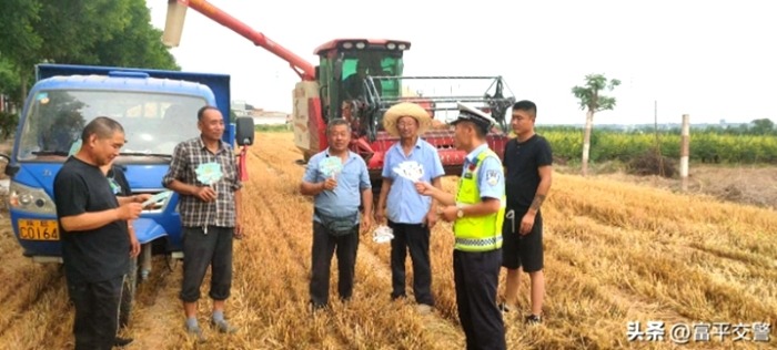 【富平交警深入田间地头开展交通安全宣传活动】当前正值农忙夏收时节,为全面提升辖区广大群众交通安全意识,最大限度地遏制和减少夏收农忙季节道路交通事故的发生,5月28日下午,富平公安局交警大队西禹中队组织宣传民警,深入田间地头,针对麦收时节交通安全特点,对群众进行交安主题教育。