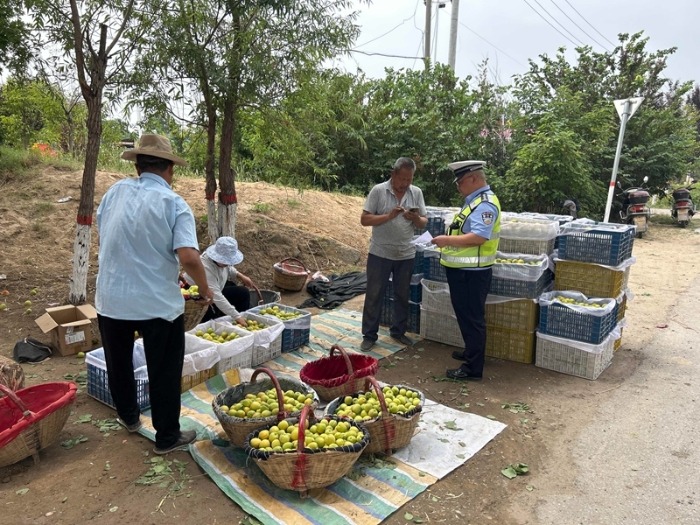 临渭交警大队交斜中队民警主动深入田间地头,“播种”交通安全。