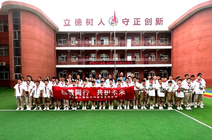 【潼关县检察院干警进校园讲授法治课】为预防和减少未成年人犯罪,在修订后的《未成年人保护法》《预防未成年人犯罪法》实施三周年之际,5月28日,潼关县检察院未成年人检察办公室主任尹延丽带领检察干警普法进校园,为文川小学师生送去一堂生动又实用的法治课。