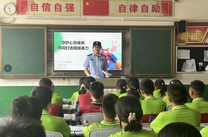 【华州公安开展普法宣传进校园活动】近日,华州公安网安大队深入少华中学开展以“打击网络谣言,拒绝网络暴力”为主题的普法宣传进校园活动。