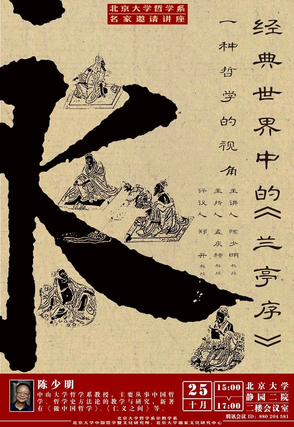 北京大学哲学系名家邀请讲座系列,本次邀请的是中山大学哲学系陈少明教授,从哲学的视角去看《兰亭序》。