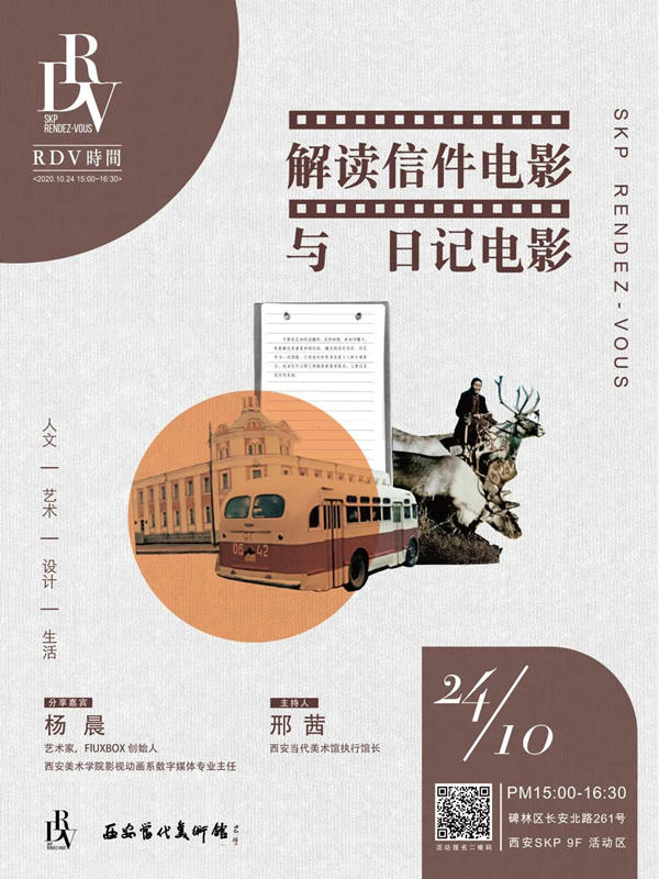 电影是每秒24格的真实记录,它让现实和历史走向艺术。10月24日,让我们相约SKP RENDEZ-VOUS,跟着艺术家杨晨一起,聊一聊信件电影与日记电影,用心去感知艺术的美丽。
