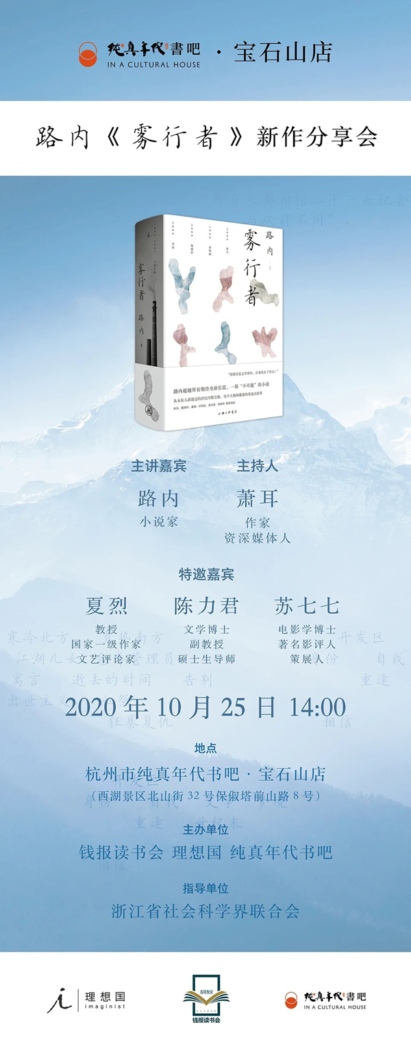 小说家路内长篇新作《雾行者》回顾了世纪交替的十年,是世纪交替的缩影,主要讲述了1998年夏季到奥运前夕的2008年之间的打工青年和文学青年的故事,在地理上横跨了中国多座城市。10月25日,作家路内携年度新作《雾行者》做客纯真年代书吧,与读者面对面交流。