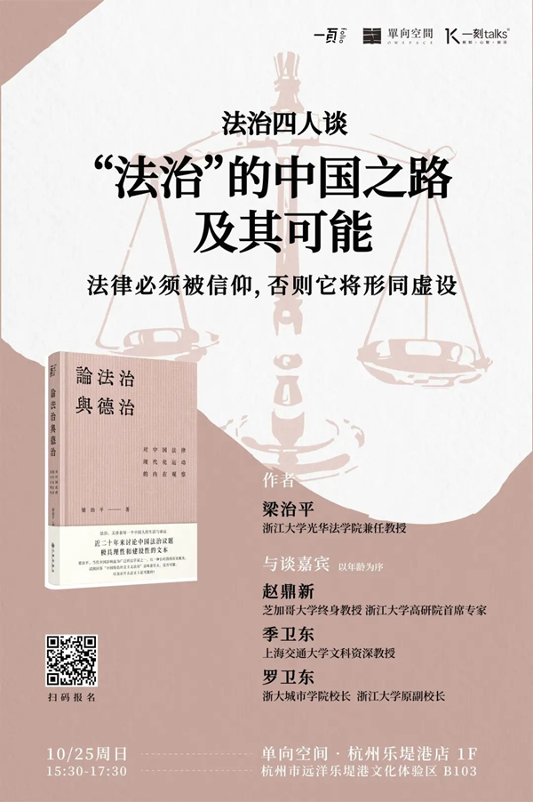 嘉宾:梁治平(浙江大学光华法学院兼任教授)、赵鼎新(芝加哥大学终身教授、浙江大学高研院首席专家)、季卫东(上海交通大学文科资深教授)、罗卫东(浙江大学城市学院校长)