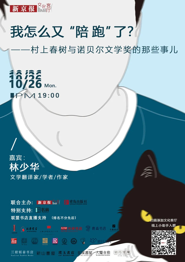 自2006年获得有“诺贝尔文学奖前奏”之称的弗朗茨·卡夫卡奖之后,村上春树的名字每年都会出现在多家博彩公司赔率榜的前端,但遗憾次次落空。有人戏称他为“万年陪跑”,也有人反驳“村上不曾参赛,何来陪跑”。而林少华认为,比诺奖更重要的是,村上把无数微茫的情绪化作纸质审美。新京报·文化客厅联合青岛出版社,邀请到文学翻译家林少华,与你一同品读村上春树文字的质感,以及他与诺奖多年来的“结缘”历程。