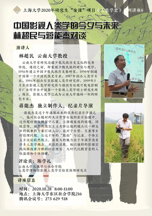 云南大学林超民教授与独立制作人蒋能杰导演将于10月28日进行对谈:影视人类学的今夕与未来。