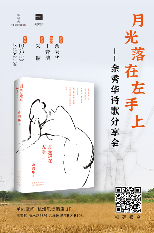 10月23日,诗人余秀华将携《月光落在左手上》新版做客单向空间·杭州乐堤港店,与艺术史博士、剧场导演王音洁,心理学博士、写作者采铜,以及读者朋友一起,聊一聊诗歌、女性与爱情。