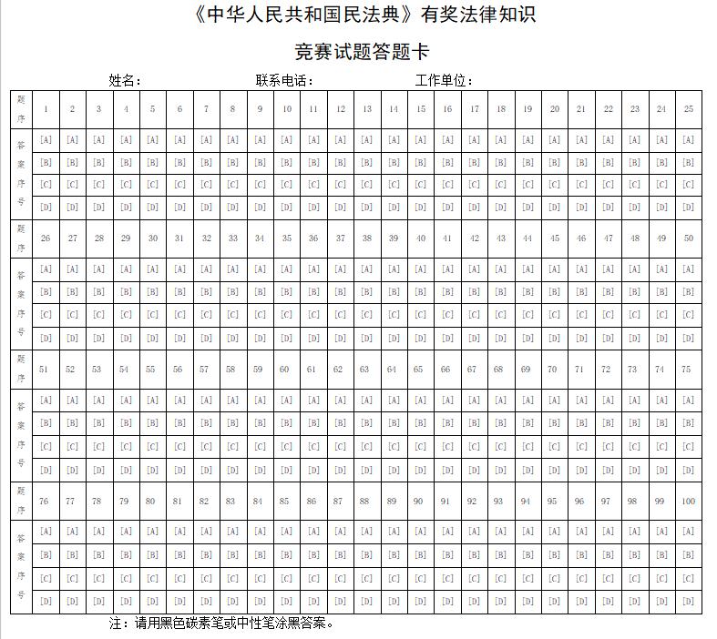 1.本次竞赛共100道单项选择题,参赛者可从网站下载答题卡或复印报纸上的空白答题卡;