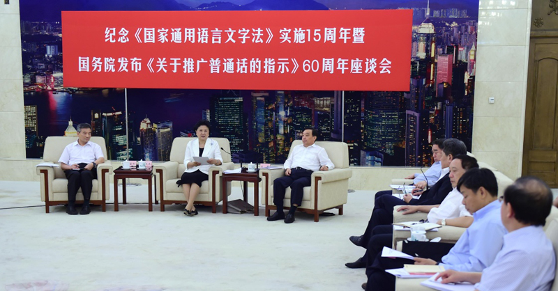 刘延东出席纪念《国家通用语言文字法》实施15周年暨国务院发布《关于推广普通话的指示》60周年座谈会