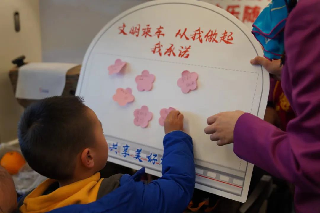 活动现场,列车工作人员还为旅客讲解文明出行相关知识,通过有奖问答、不文明行为情景模拟等形式与旅客积极互动,鼓励大家共同营造良好的文明乘车环境。