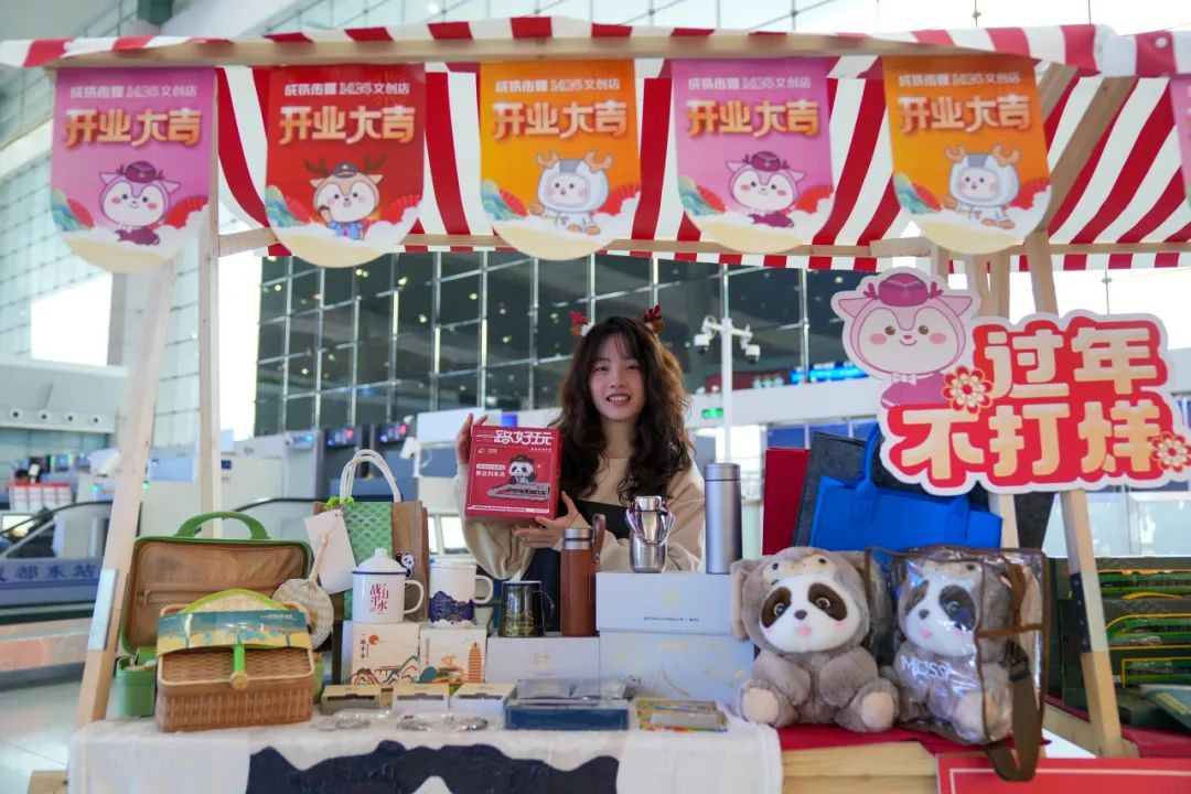 活动现场,西南首家铁路主题文创实体店——1435文创店也正式开业,一系列铁路文创产品在年货节上首次亮相。