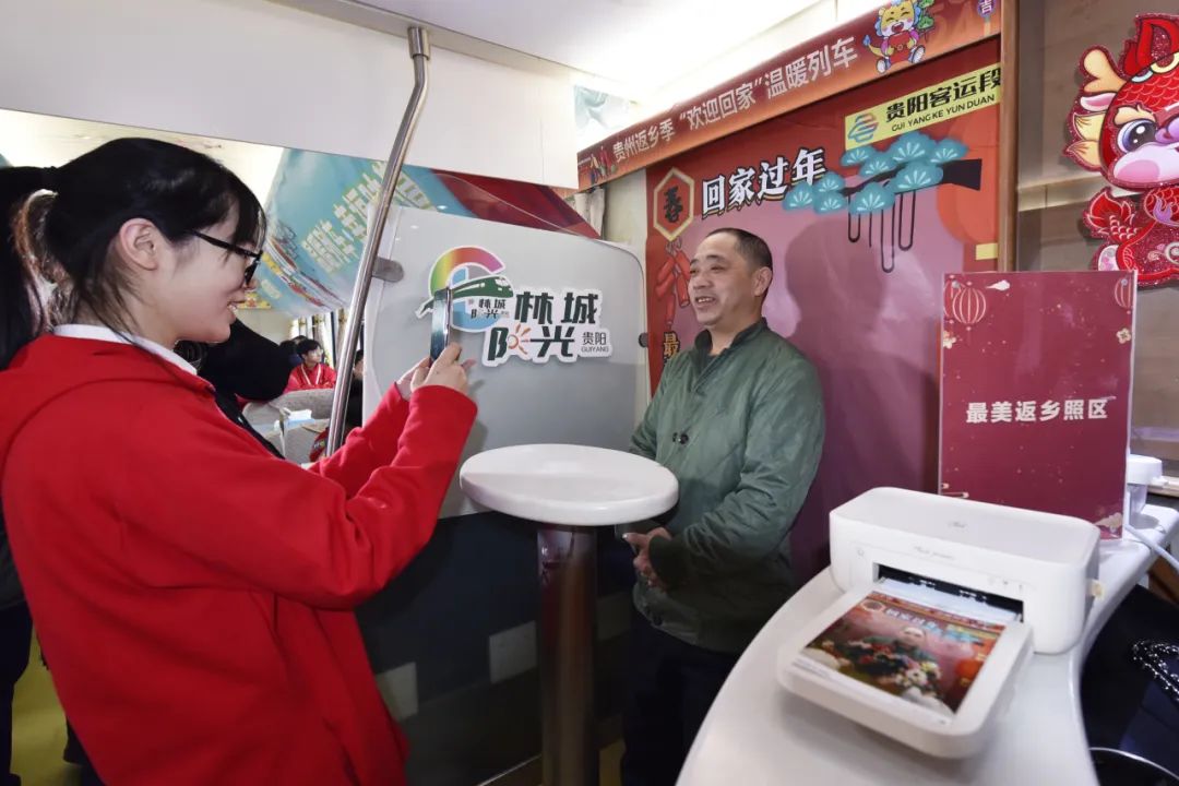 “这是我第一次在列车上拍照,相片打印出来后还贴心地配上了相框,我会好好珍藏。”来自贵州盘县的王志兵,是一名在上海打工的建筑工人,今年是他连续第5年在这个时间节点回家过年。他说,工作多年,手机里的相片很多,但看照片的时间却越来越少,这次打印出来的照片令他既惊喜又感动,觉得非常温暖。