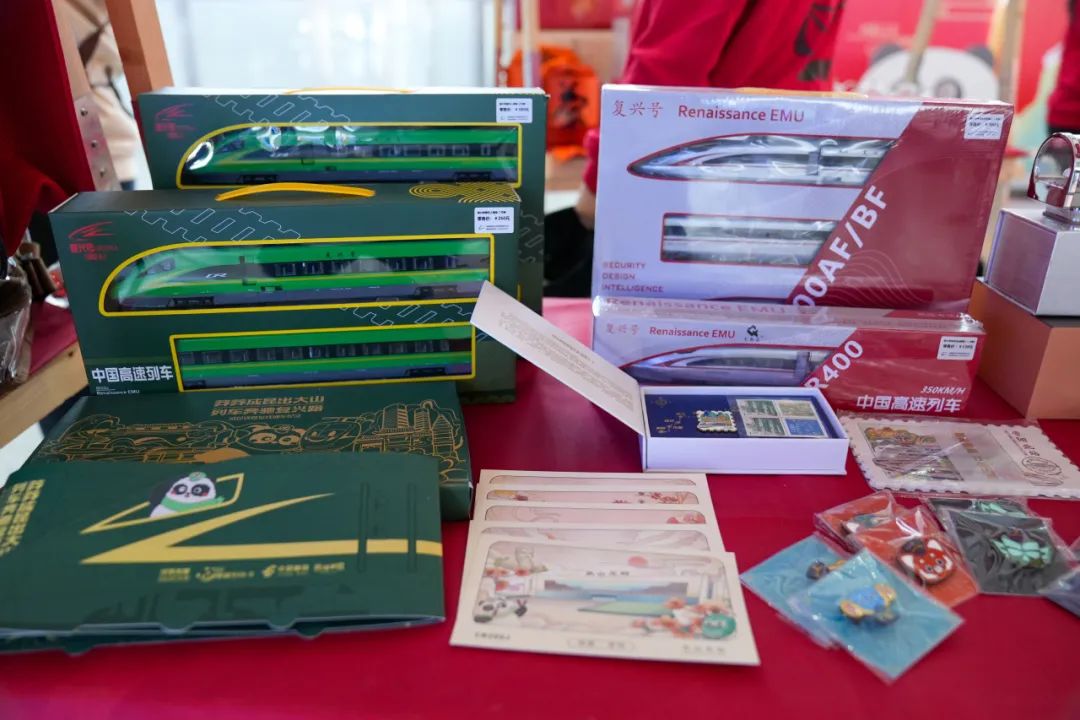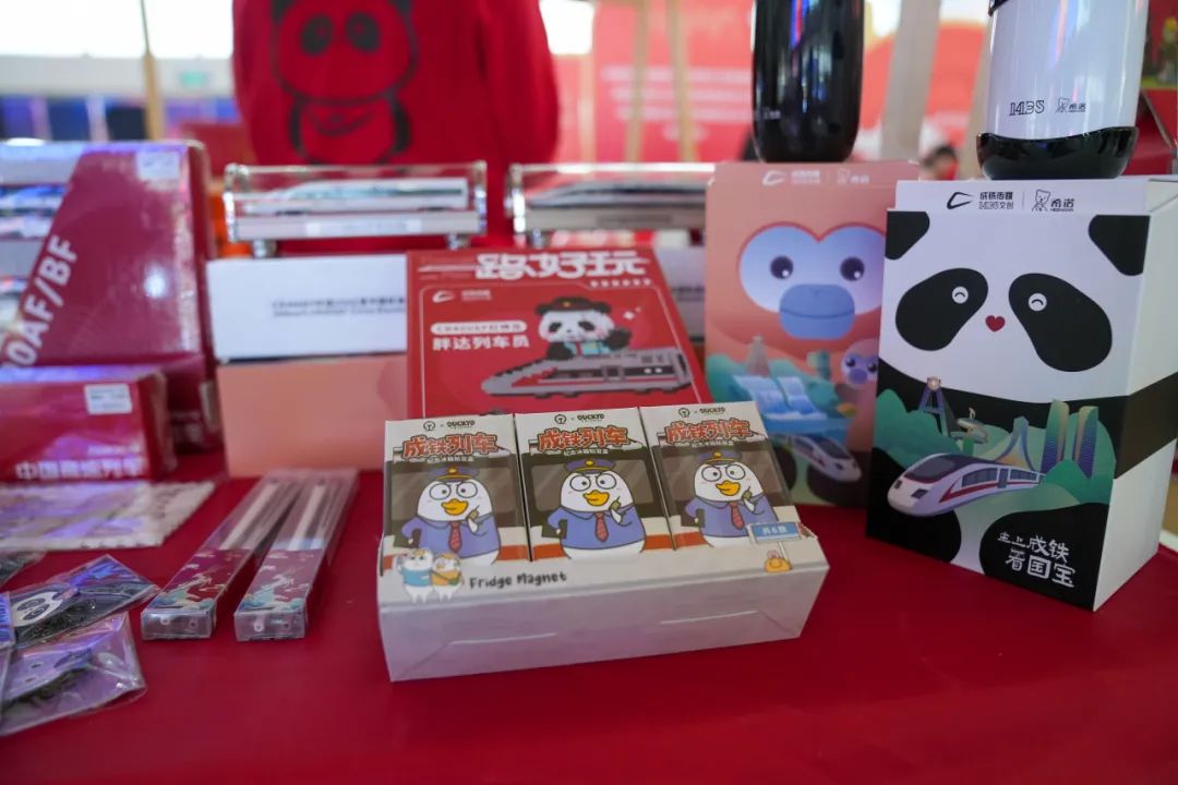 “坐上成铁看国宝”熊猫杯和金丝猴杯、成铁列车冰箱贴盲盒、贵南高铁等铁路文创产品,深受旅客喜爱。