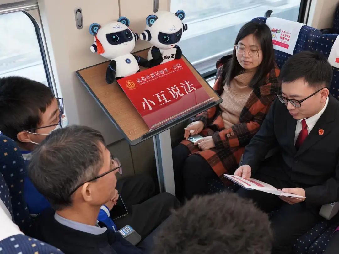 此次普法宣传活动由成都局集团公司客运部、企法部、重庆客运段联合成都铁路运输第一法院共同开展,主要面向川渝地区的旅客,通过在列车上设置“法律服务点”,开展法律知识问答,为旅客普及《民法典》《劳动法》等法律法规,提供免费法律咨询。