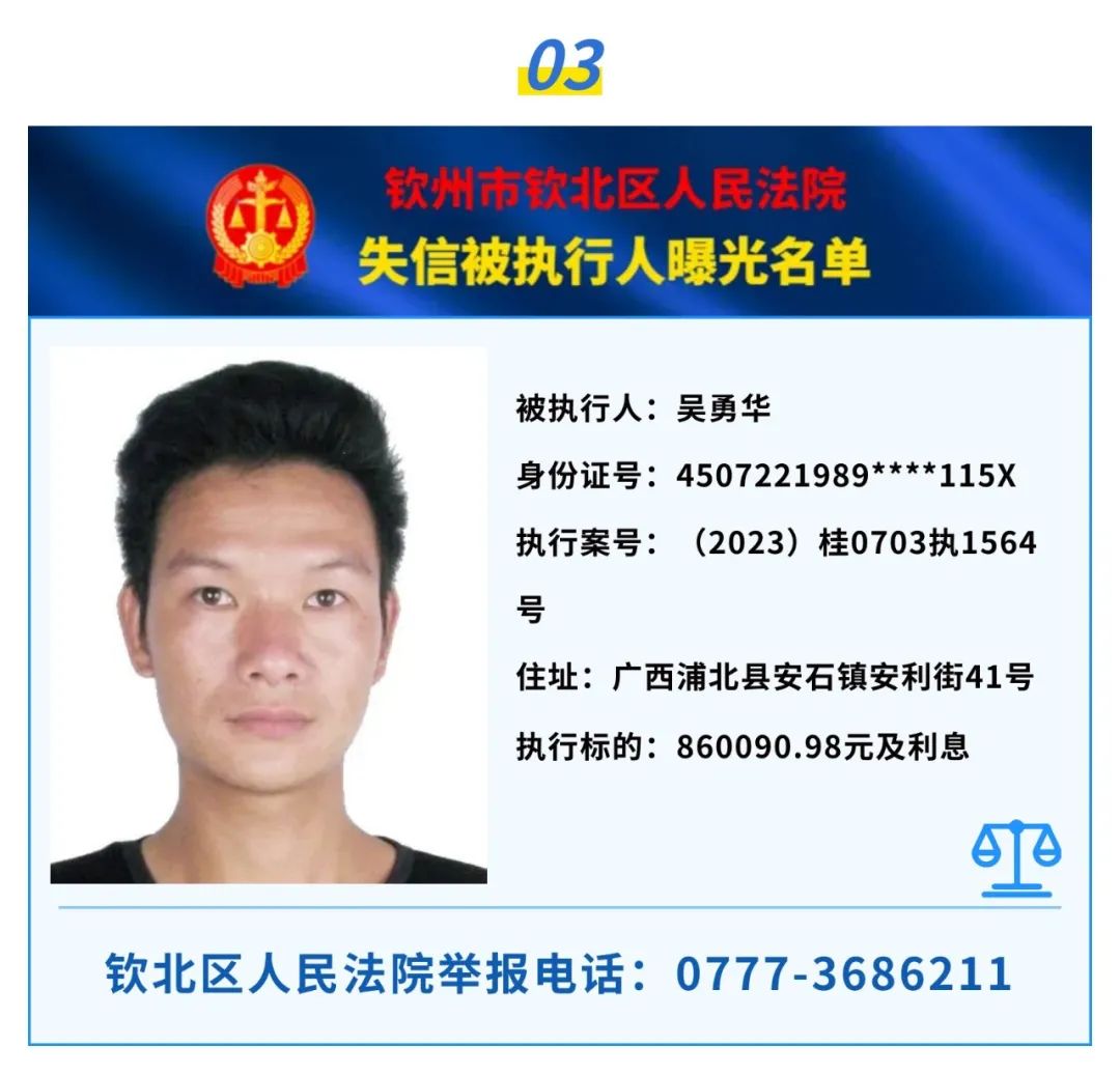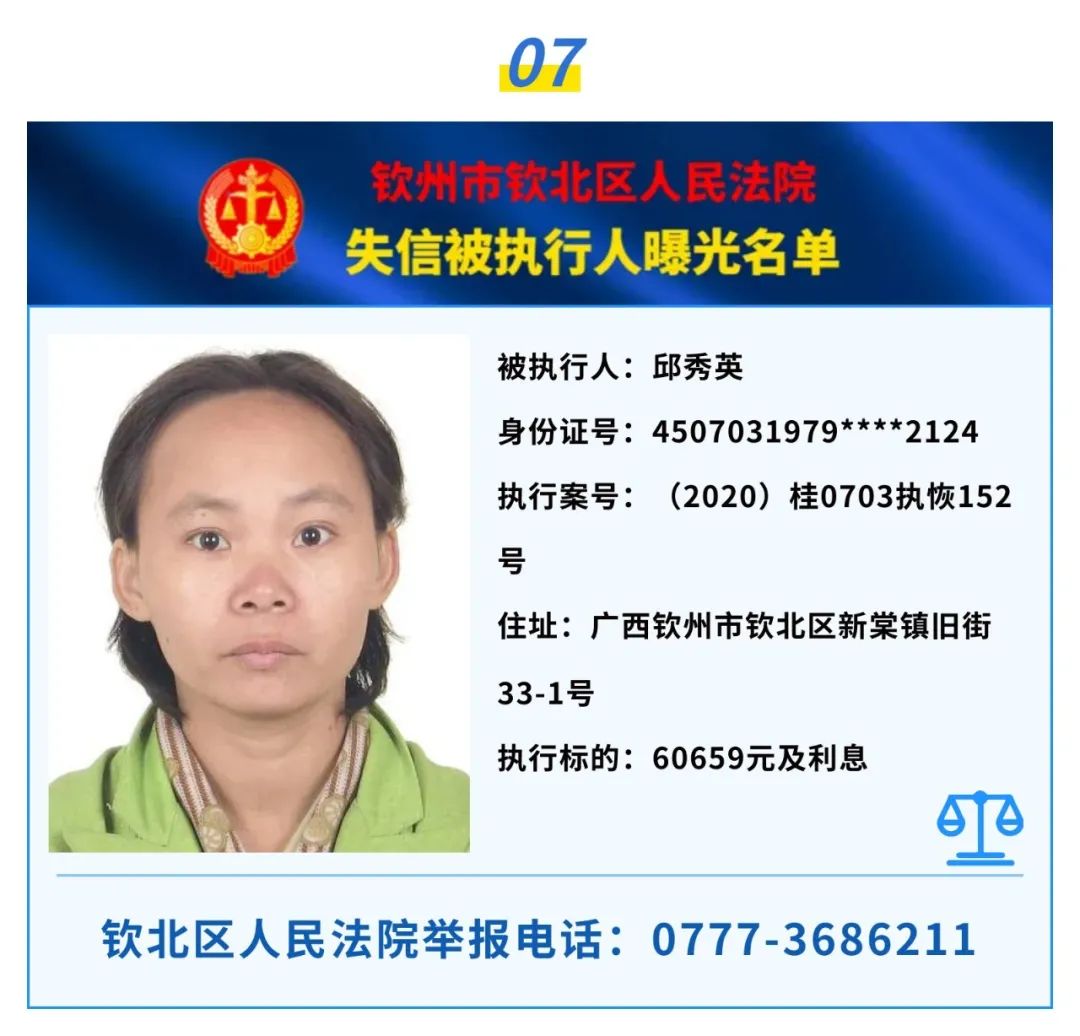 限以上被执行人自本通告发出之日起10日内自行或委托他人到钦州市钦北区人民法院执行局如实申报财产并履行生效法律文书所确定的义务。