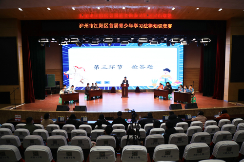 本次竞赛分泸州市梓?H路学校、泸州市江阳西路学校、泸州国家高新区初级中学校三个赛区,来自江阳区25所学校100余名选手参加比赛。竞赛内容包括《宪法》《民法典》《未成年人保护法》《预防未成年人犯罪法》等涉及青少年的相关法律。竞赛设个人必答题、抢答题、小组必答题、风险题、加赛题五种题型。
