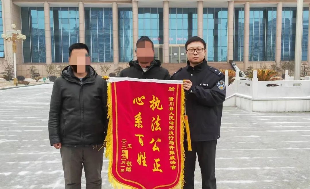 “要不是法官帮我们执行,这个年都不知道该怎么过了!拖欠十年的劳务款终于发放到位了,我们终于可以踏实过年了!”王某某激动地将一面印有“执法公正,心系百姓”的锦旗送到了许振威法官的手中,为法院点赞致谢。