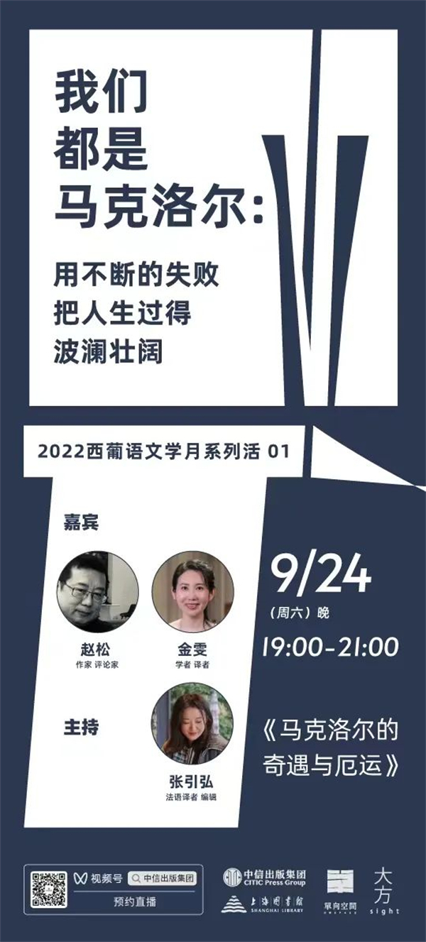9月,中信出版x上海图书馆x单向空间将联合从哥伦比亚作家阿尔瓦罗·穆蒂斯与他的由七个部分组成的小说群《马克洛尔的奇遇与厄运》出发,聊聊我们自身和时代,大海和森林,以及并不魔幻的拉丁美洲,跟随主人公马克洛尔去往世界的每一个港口,用不断的失败把人生过得波澜壮阔。9月24日,作家、评论家赵松和学者、译者金雯以及法语译者、编辑张引弘将以“我们都是马克洛尔”开启本次文学月的首场沙龙,让为现实拼搏的人看到人生的另一种可能——勇于探险,即使不断失败也能拥有波澜壮阔的人生。