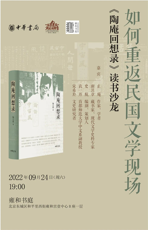 北京|如何重返民国文学现场——《陶庵回想录》读书沙龙