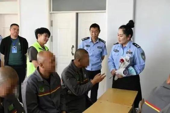 图为在乌兰察布市强戒所公安民警给吸毒人员开展普法教育。