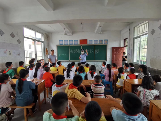 福州铁路公安处南平北车站派出所民警在教室为孩子们讲解铁路法制安全知识。福州铁路公安处供图