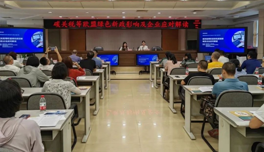 ▲市商务局、市司法局联合举办“碳关税等欧盟绿色新政影响及企业应对解读”